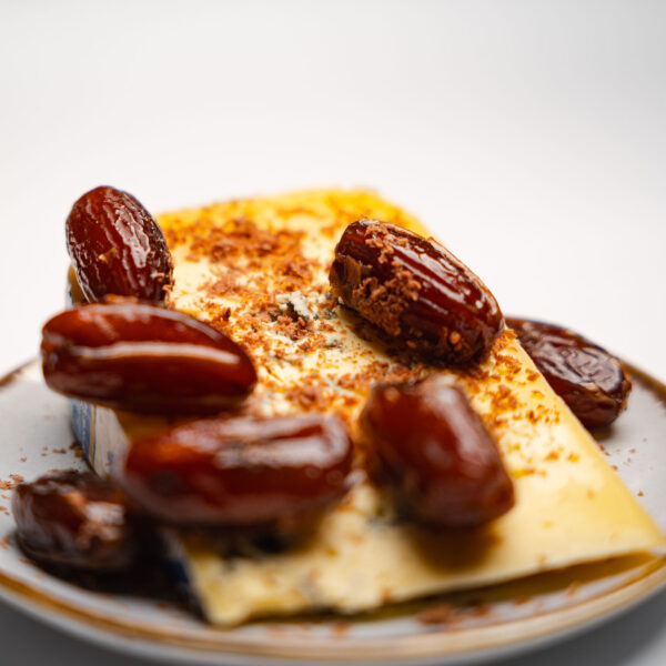 Elk gerechtje wordt geleverd met een kaart waarop staat hoe je het mooi kunt opmaken, plus alle ins en outs over het stukje kaas. Ideaal als borrel, voor- of nagerecht.